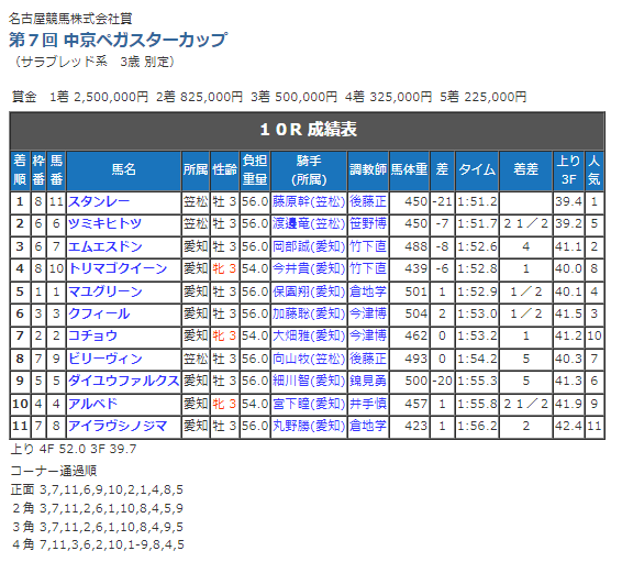 名古屋競馬株式会社賞 第7回 中京ペガスターカップ(SPⅡ)結果
