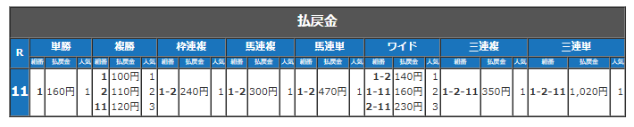 『中日スポーツ杯 第64回 駿蹄賞(SPⅠ)』の結果